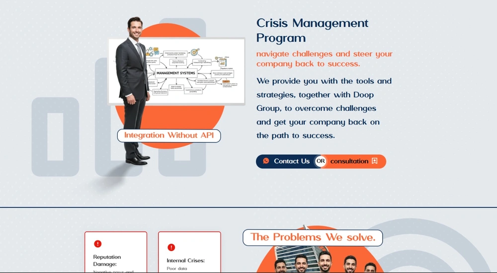 A landing page for an investment company promoting their Crisis Management Program.